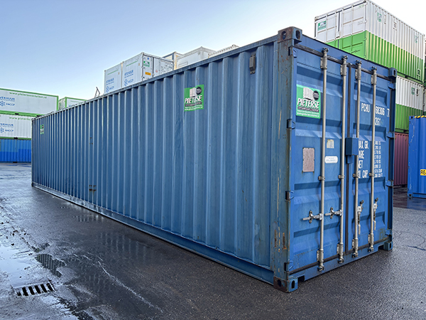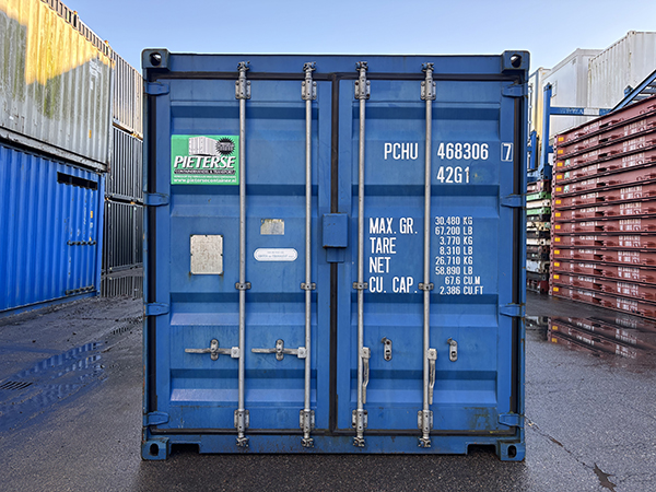 • Twee openslaande deuren aan één korte zijde van de zeecontainer